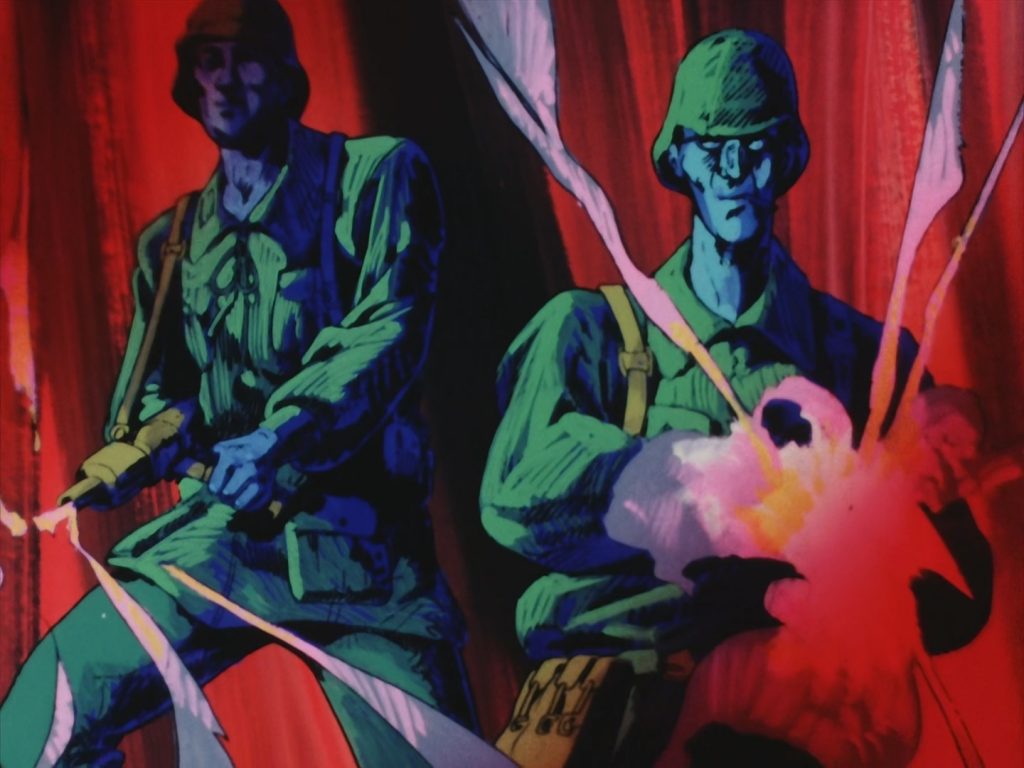 Als weiteren Minuspunkt des episodischen (und damit immer wiederkehrenden) Teils der Serie müssen noch die Actionszenen erwähnt werden. Im Laufe der Story beschleicht mich der Gedanke, dass ein kleiner, japanischer Michael Bay seine Finger im Spiel hatte. Meine „willing suspension of disbelief“ muss teilweise aussetzen, wenn eine fliegende Cessna an einen LKW-Trailer andockt. Bei voller Fahrt. Oder wenn Verbrecher ihren Fluchtwagen während einer Verfolgungsjagd umlackieren. Das Springen mit einem Crossmotorrad vor einen fahrenden Zug gehört noch zu den glaubwürdigeren Szenen. Insgesamt alles Over-The-Top wie zu den besten Roger-Moore Bondzeiten.